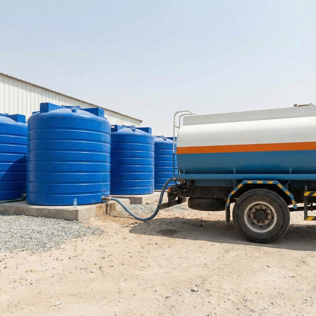 We provide bulk potable water to labor camps and private villas. Our tankers ensure that tanks are filled promptly, providing peace of mind for residents and workers alike.
